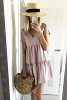 Pudrowa damska sukienka z falbankami Ivon