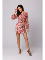 Różowa kopertowa sukienka mini w drobną łączkę Makover